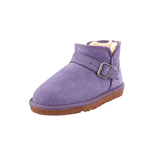 Womens Suede Leather Bulckle Winter Snow Boot Ankle Warm Boots Lavender-38