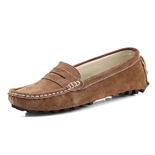 Best Seller! SUNROLAN Rebacca Women's Suede Leather Driving Moccasins Slip-On Penny Loafers Flats Boat Shoes, Khaki, UK 4.5 Review